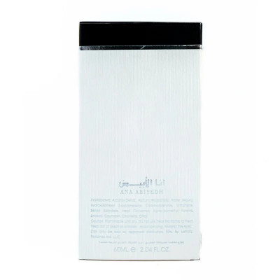 Ana Abiyedh Eau de Parfum by Lattafa Perfumes is velvety freshness combined with sweet and woody notes. The Oriental Scent for Man and Women is designed to elicit a hidden seductive power that envelops the man and woman who wears it with a captivating allure.